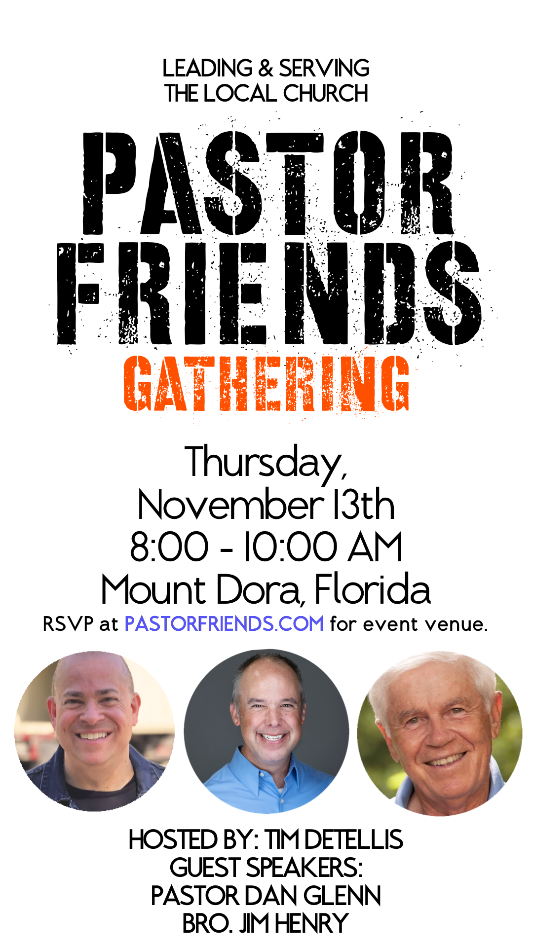 Join us at our next Pastor Friends gathering featuring speakers to share encouragement and insights to help you and strengthen your local church.