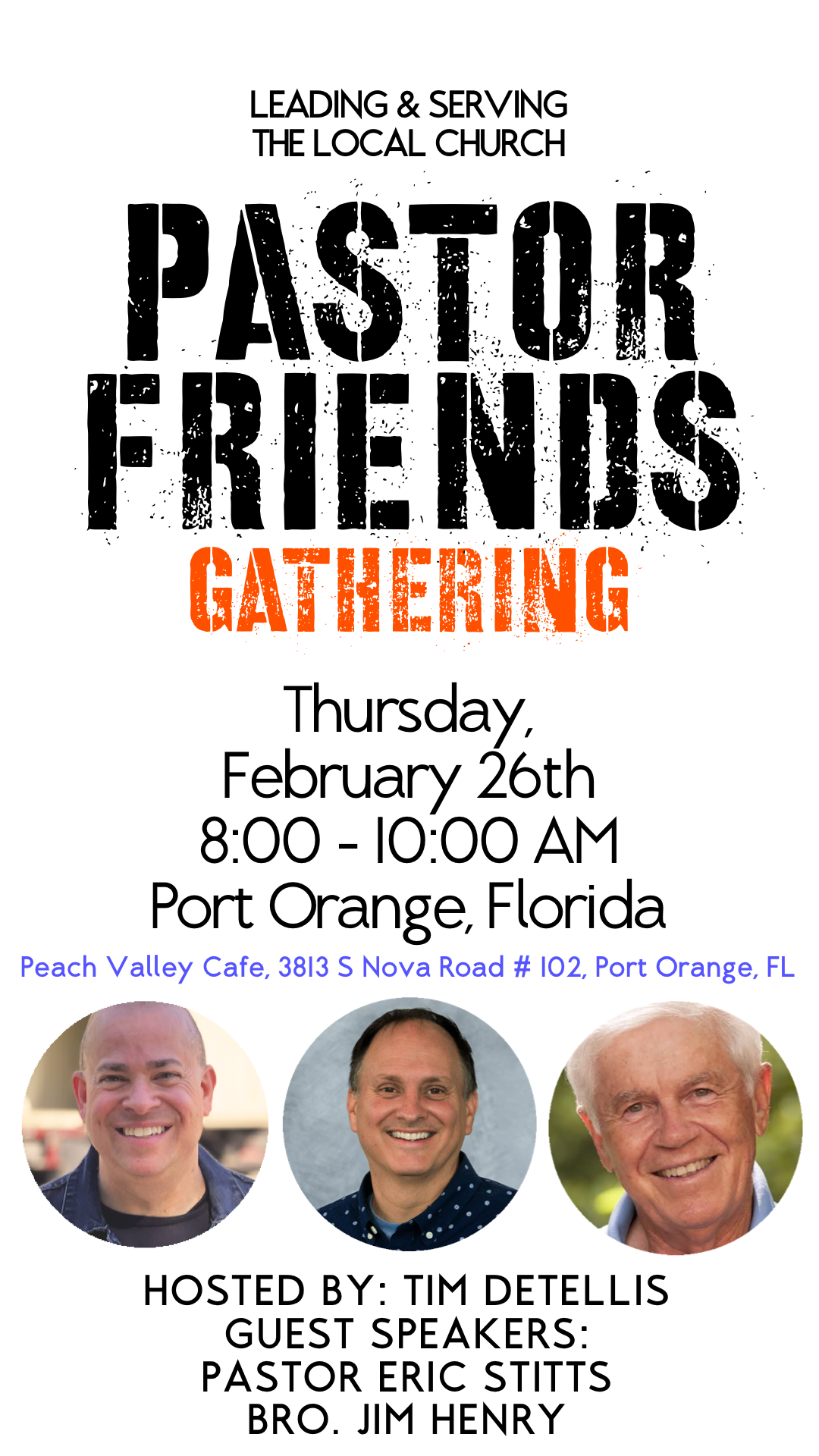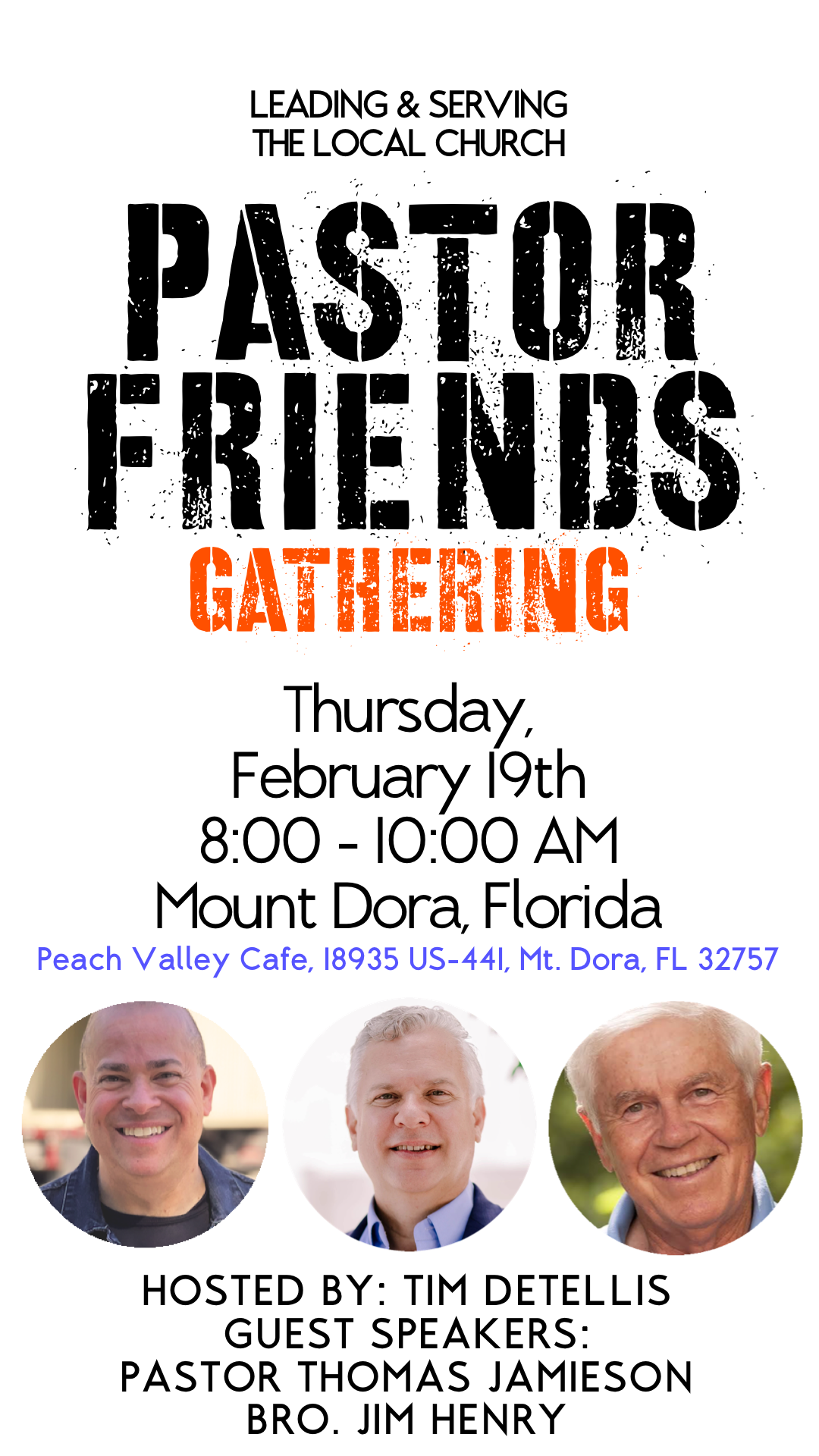 Join us at our next Pastor Friends gathering featuring speakers to share encouragement and insights to help you and strengthen your local church.